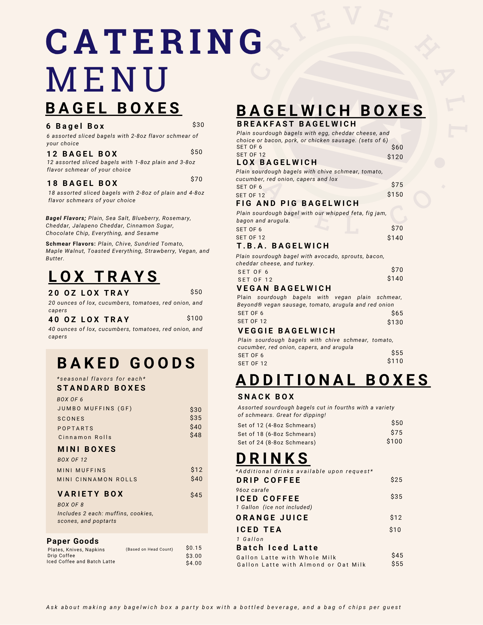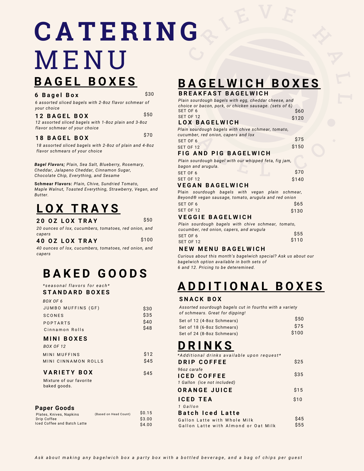 Let us cater your next event with our delicious, fresh bagels made with whole ingredients.